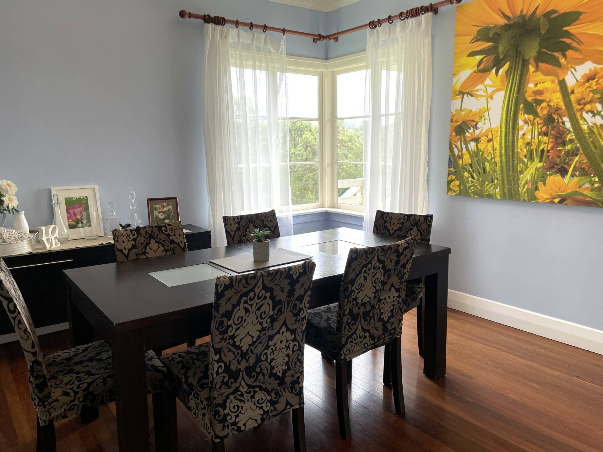 This entertaining space looks into the paddocks and mature trees, just a picture