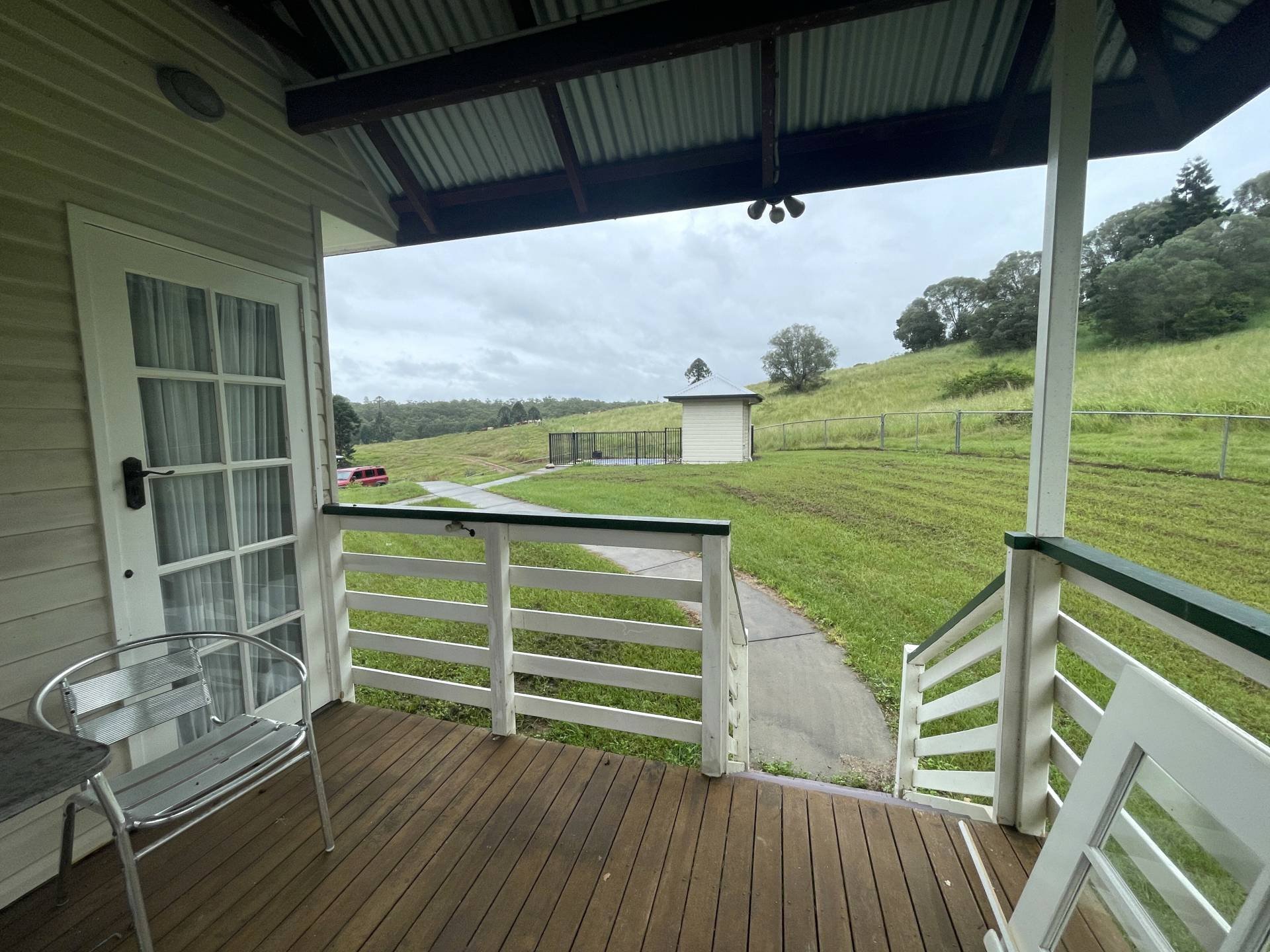 • North facing covered front veranda, looking out to the spa pool and sauna